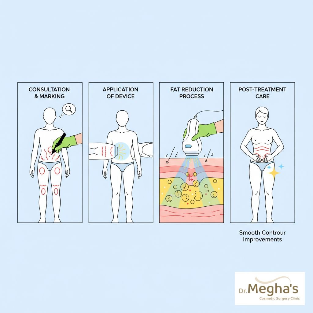 It is a fat-reduction treatment that uses advanced technology to break down fat cells without surgery. The body naturally removes these broken fat cells over time.