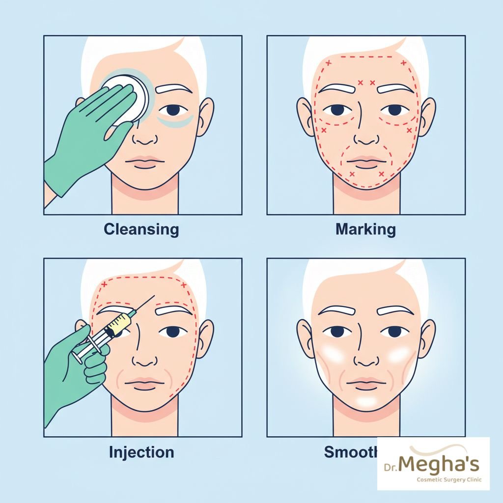 At DR. medha cosmetic surgery clinic, patients are offered multiple options depending on age, skin type, and wrinkle depth.